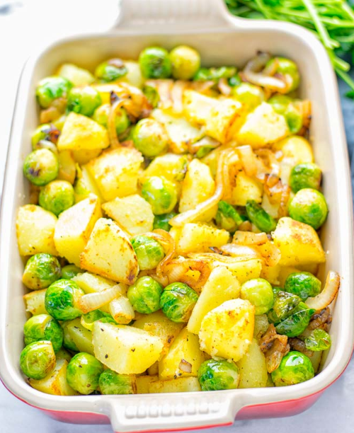 These Garlic Brussels Sprouts Potatoes are completely veggie lover, gluten free, thus simple to make. An ideal warming dish for the Christmas season, yet additionally throughout the entire year.